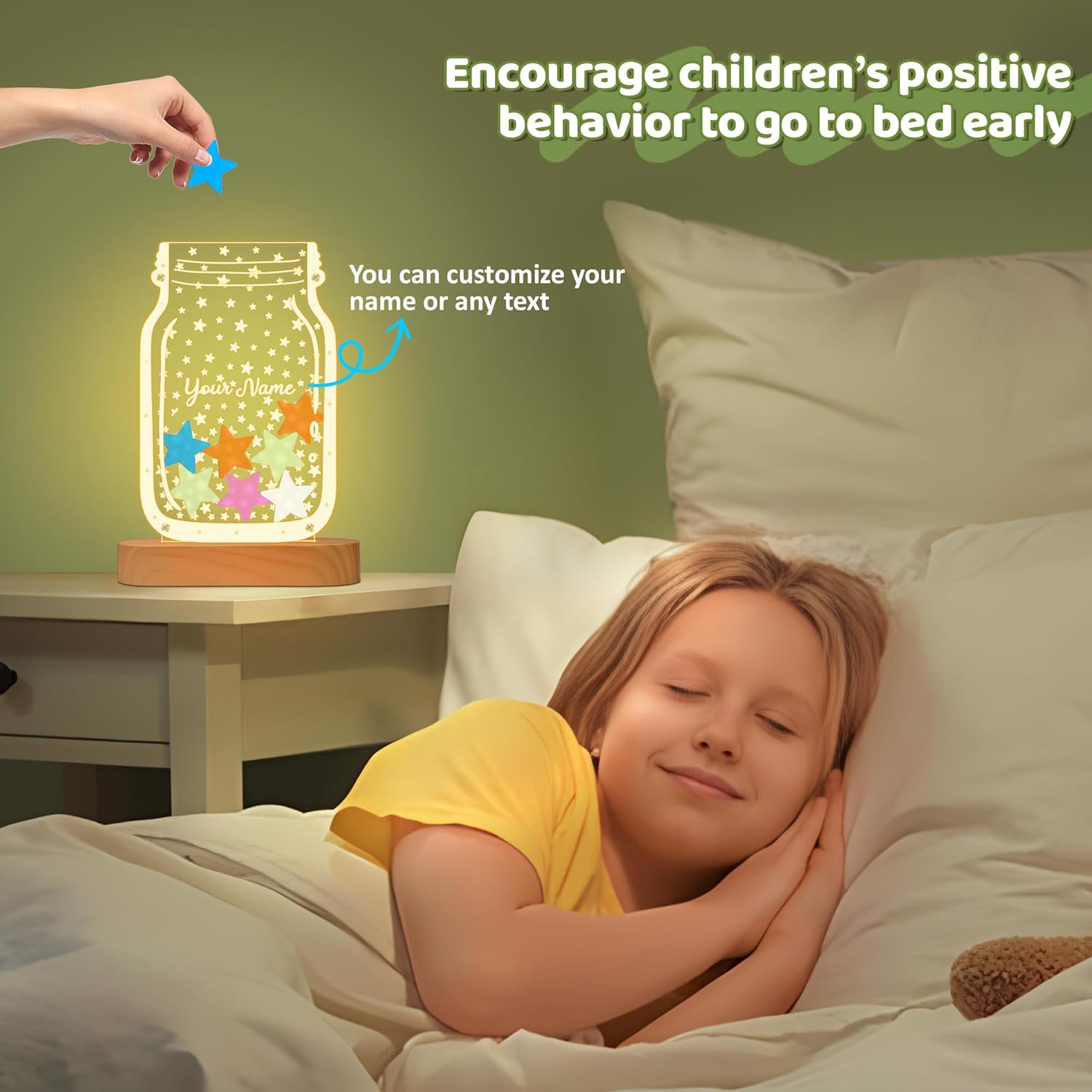 Why Choose it? ✔ A Brand new acrylic reward jar with light is the best choice for kid reward system and room decor. It can encourage children and motivate good behavior, homework housework chores ✔ This light up reward jar has a unique breakthrough with led light. The reward jar Lamp breaks the limitation of traditional reward jar only used for reward system. It adds LED light that can be used as a night light, becomes more creative and multifunction. ✔ Best Gifts during Birthday, Christmas, Children's Day, Anniversaries, Thanksgiving or Easter. Satisfactory service: ★30-days refund protection. ★SAFE-BUY for any quality-related issue. Note: ⚠Please only hold the board on the edge instead of the front to avoid leaving fingerprints on the acrylic panel surface. ⚠On/Off switch on the USB, connect to the base (Photos Not Included). ⚠Not suitable use for reading or main lighting source. Description:Colors: Warm Color power supply: USB plug in Power Input: DC 5V 1ASwitch mode: Button Switch Product Power: 0.5W Power spend: 0.012 kw.h/ 24 hours; 4.38 kw.h per year LED life span: 10000 hours Material: Acrylic + ABS Package Weight: 300g Package include: -2 x Acrylic Plate -1 x Base with USB cable-6 x Transparent plastic screws and nuts-25 x acrylic stars-1 x small sack-1 x Soft Cleaning Cloth-1 x Instruction Manual